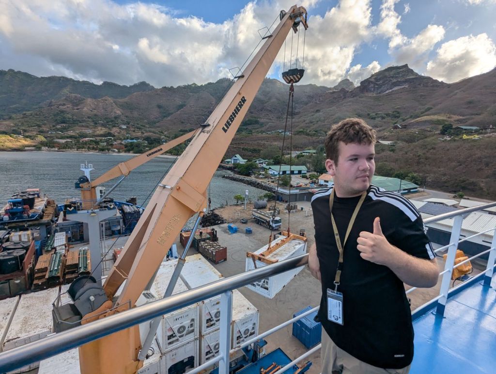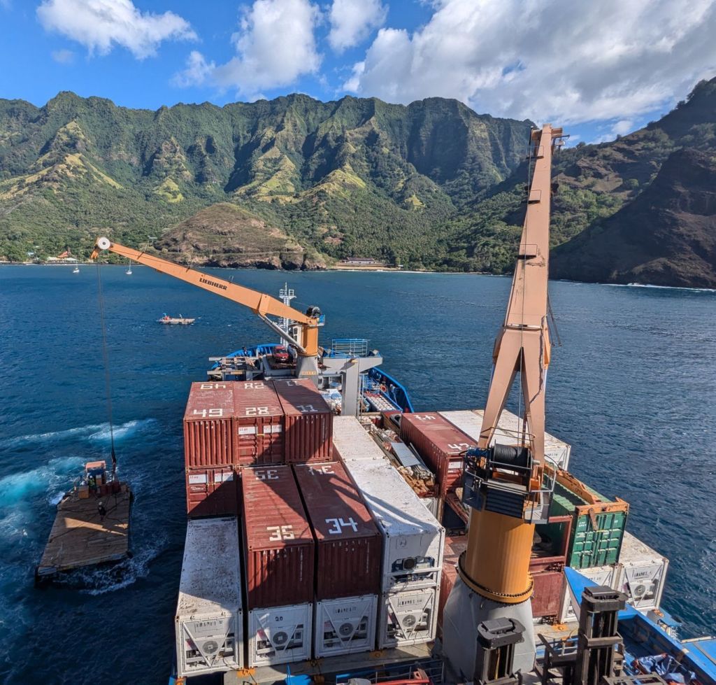 Nach einem Tag auf See erreichten wir die größte der Marquesas-Inseln: Nuku Hiva. Gleich nach der Ankunft startete das Ent- und Beladen der mitgeführten Ladung.