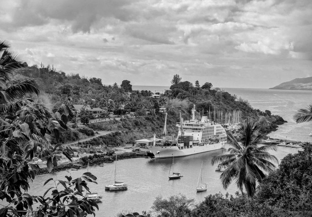 Am Samstag gehen wir hier an Bord der Aranui 5, einem Frachtschiff mit Passagierkabinen, das die entlegenen Marquesas-Inseln versorgt. Es ist halb Kreuzfahrtschiff, halb Versorgungsfrachter. Die Aranui bringt Güter, Baumaterial und Lebensmittel zu Inseln, die sonst schwer erreichbar wären und nimmt Reisende mit. Die kommenden Tage werden uns weit weg von Tahitis Küste führen, zu Orten, die nur über den Seeweg erreichbar sind, zu Dörfern, die auf Lieferungen warten, und zu Inseln, die selbst in Französisch-Polynesien als abgelegen gelten.