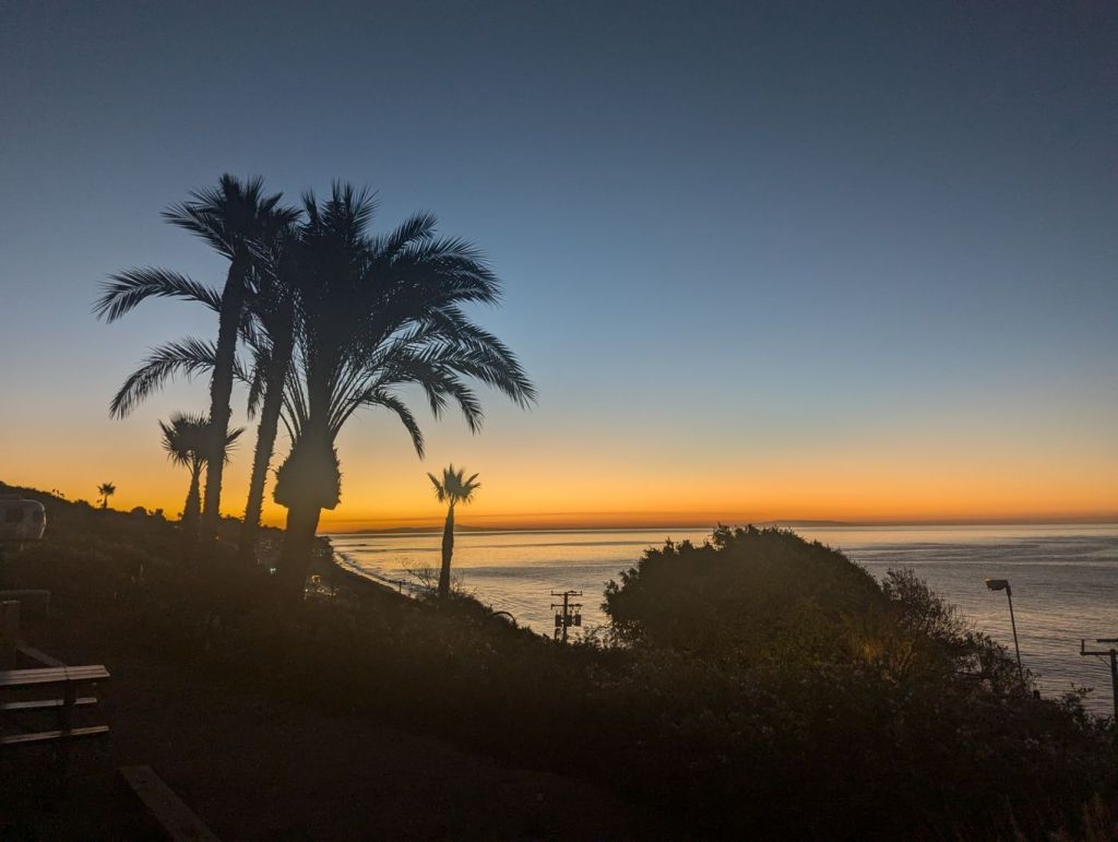 Als letzte Station vor der Abgabe des Wohnmobils hatten wir Malibu, nördlich von Los Angeles gewählt. Ein schöner Campingplatz im Hang gelegen mit einem phantastischen Blick auf den Pazifik. Aber um an den Strand zu kommen mussten wir erst den Highway überqueren. Den letzten Abend vor der Abgabe des Wohnmobils wollten wir im nahegelegenen Fischrestaurant ausklingen lassen. Als Fußgänger gab es nur die Möglichkeit am Highway entlang zu gehen. Die Amerikaner fahren natürlich mit dem Auto vor. Wir haben den schönen Abend trotzdem in vollen Zügen genossen! Am nächsten Morgen  vor der Abfahrt aus Malibu zur Wohnmobile Abgabe konnten wir die Sonne über LA aufgehen sehen. Aus der Ferne war von den vielen Autobahnen nichts zu sehen.