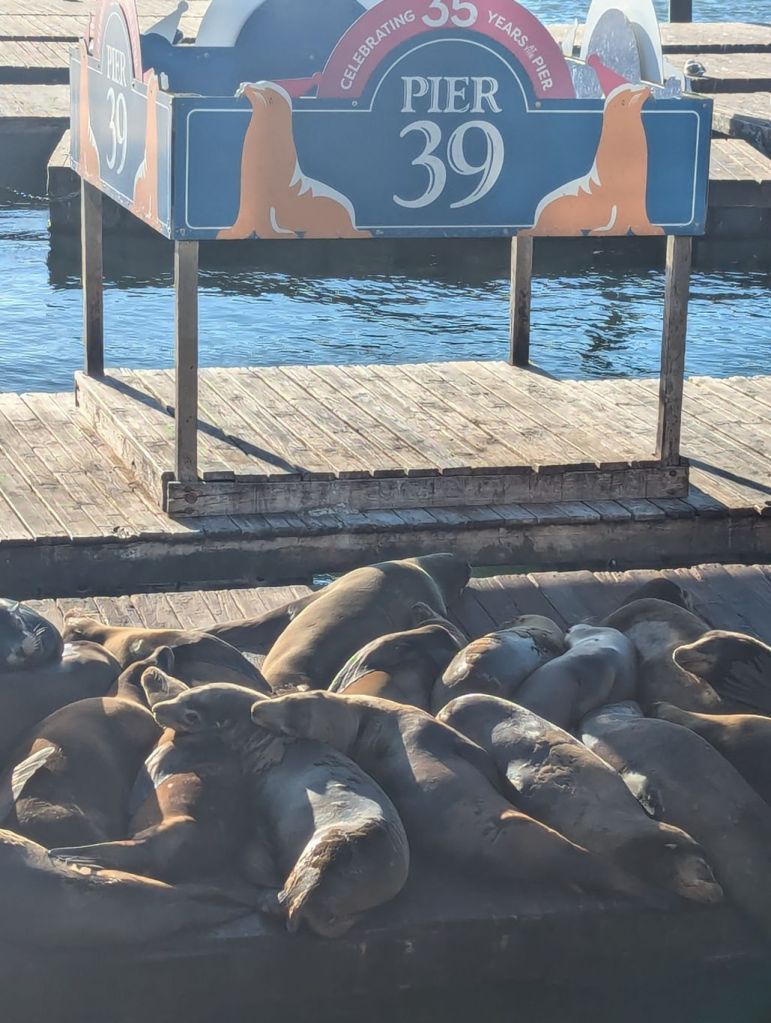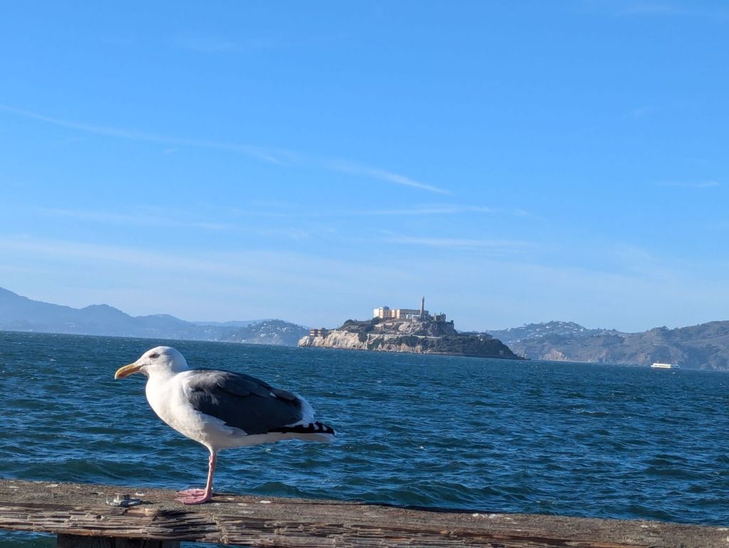 Nach der Ankunft zog es uns direkt ans Wasser – zum berühmten Pier 39. Besonders faszinierend waren natürlich die Seelöwen, die auf den Holzplattformen entspannt in der Sonne lagen und lautstark um die besten Plätze stritten. Im Hintergrund tauchten die Konturen der Golden Gate Bridge und der Alcatraz Insel auf.