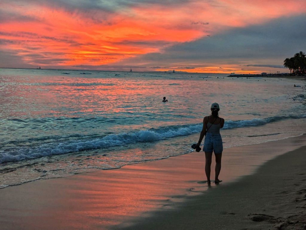 Bis zum Waikiki Beach war es nicht weit. An den beiden nächsten Tage genossen wir erstmal die Stadt und das Meer. 30 Grad Luft- und 27 Grad Wassertemperatur. Abends in den Sonnenuntergang schwimmen und am Horizont die Surfer auf der Welle. So stellt man sich Hawaii vor.
