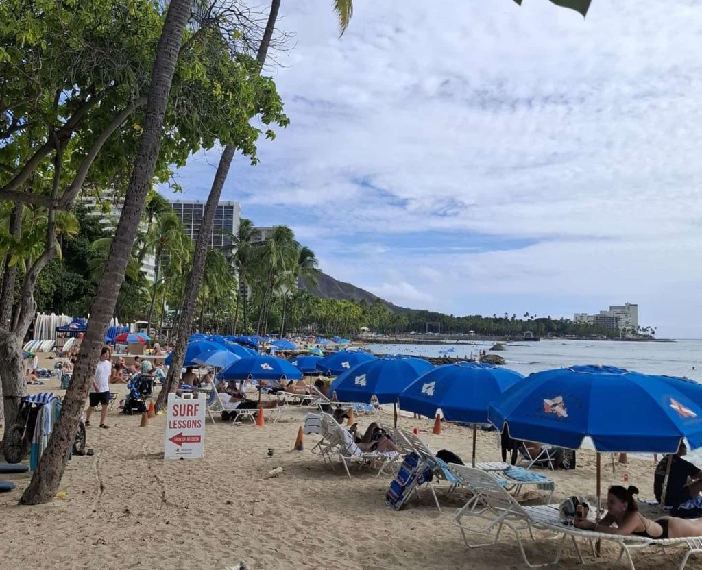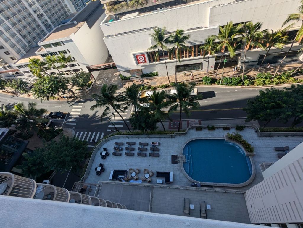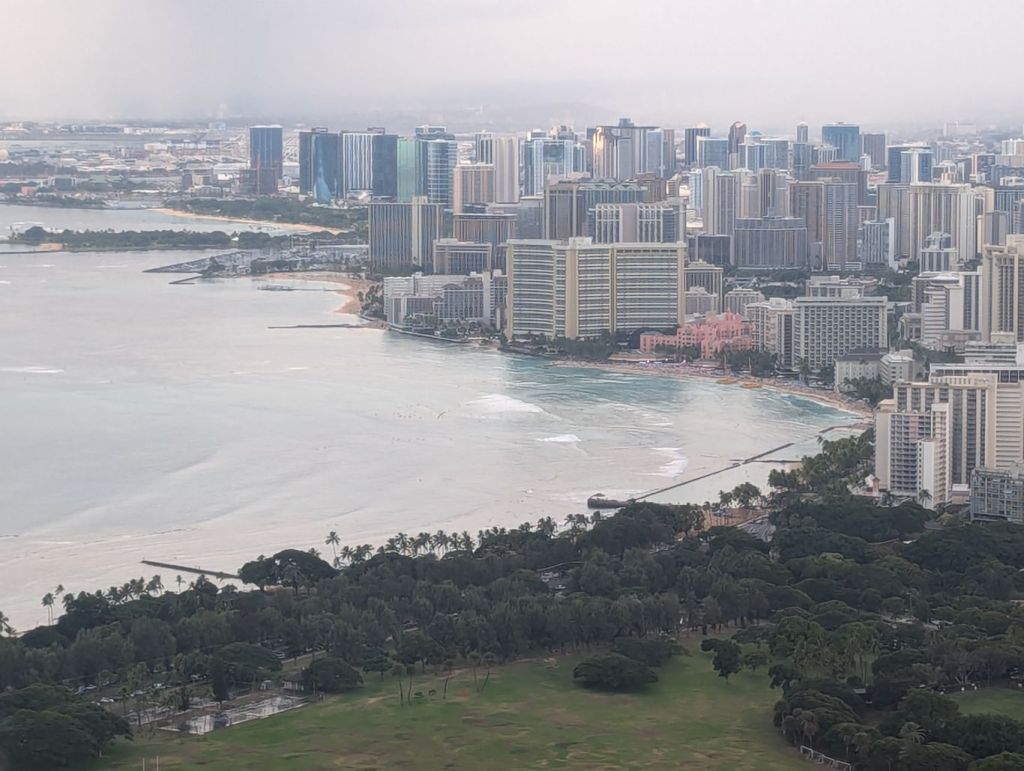 Unser Flug von San Francisco nach Honolulu startet schon um 7.30 Uhr. Die sechs Stunden vergingen dank Film und Internet im wahrsten Sinne des Wortes wie im Flug. Aufgrund der Zeitverschiebung waren wir schon um 11.00 Uhr in Honolulu. Bisher hatten wir mit unserer Unterkunft  immer Glück und waren durchweg zufrieden. Doch diesmal ereilte uns eine böse Überraschung. Schon als wir vor dem Hotel ankamen hatten wir ein ungutes Gefühl. Kein Wunder, unser Apartment lag im 13. Stockwerk. Dicker Staub auf den Regalen, der Teppich löste sich auf, die Sofakissen speckig und vom Balkon der Blick auf die Baustelle eines entstehenden Hochhauses. Unsere Stimmung sank schlagartig in den Keller. Wir stellten die Koffer ab und gingen erstmal zum Essen ein Stück weiter in die Stadt. Das Restaurant gehörte zum einem Hotel. Wir ließen uns gleich mal die Zimmer zeigen. Alles Super, beste Lage und auch noch günstiger. Stornierung des alten war auch günstig möglich – alles online in wenigen Minuten! Und schon rollerten unsere Koffer durch Waikiki. Wir wohnten jetzt im 14. Stock. Unser neues Hotel hatten kein 13. Stockwerk – die Woche in Honolulu war gerettet!