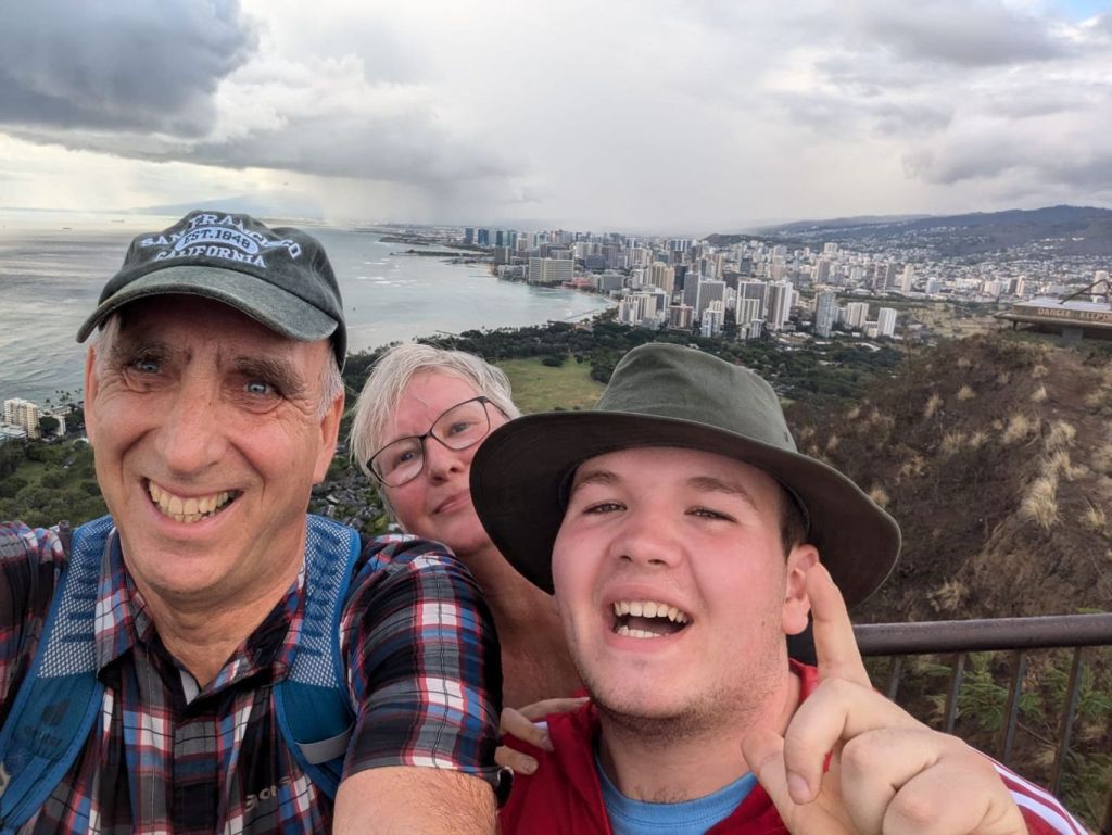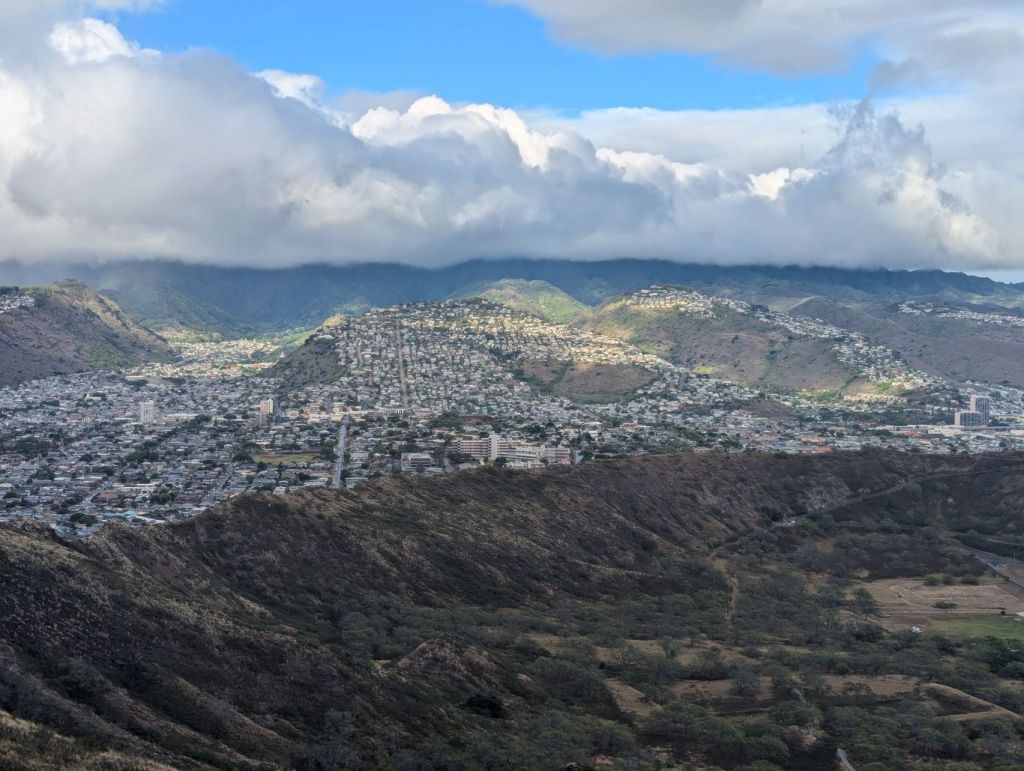 Samstag planten wir dann einen Ausflug zum nahegelegenen erloschenen Diamond Head Vulkan. Die Wanderung startet im Kraterinneren, den man durch einen Tunnel erreicht, und führt hinauf auf den noch gut erkennenbaren Kraterrand. Oben angekommen wurden wir für die Anstrengungen mit einem phantastischen Rundumblick auf Insel, Stadt und Meer belohnt.