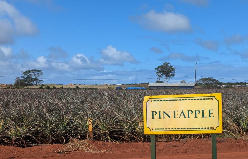 Für Montag den 10.11. hatten wir uns ein Auto gemietet um die Insel zu erkunden. Honolulu City hat 350.000 Einwohner, die Region liegt bei über einer Million. Hawaii ist ein US- Bundesstaat und auch hier ist vieles fürs Auto ausgelegt. Als wir aus der Stadt Richtung Nordküste herausfahren kommen ein klein wenig Erinnerungen am Los Angeles auf. Hier sind die Highways aber nur vierspurig. Doch schon bald sind wir auf einer Landstraße und fahren durch riesige Ananasfelder und stoppen bei der Dole Plantage. Die Geschichte der Plantage reicht bis ins Jahr 1900 zurück, als James Drummond Dole, ein junger Unternehmer aus Massachusetts, hier seine erste Ananasfarm gründete. Was als kleiner Versuch begann, wurde schnell zum Symbol hawaiianischer Landwirtschaft. Millionen Ananas wurden von hier in alle Welt exportiert, und „Dole“ wurde zu einem der bekanntesten Namen der Inseln. Heute ist die Dole Plantation eine Mischung aus Landwirtschaft, Museum und Erlebnisort. Eine kleine Bahn – der Pineapple Express – fährt gemächlich durch die Felder und erklärt den Anbau, die Ernte und die verschiedenen Sorten. Entlang der Strecke wachsen nicht nur Ananas, sondern auch Kaffee, Kakao und tropische Blumen.