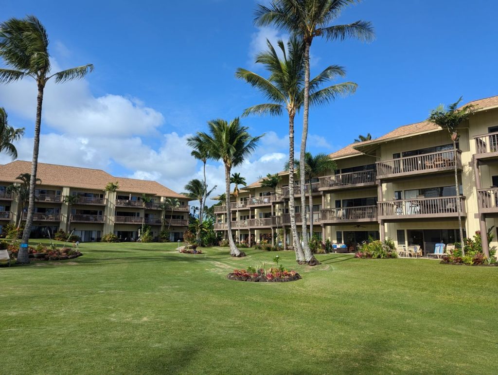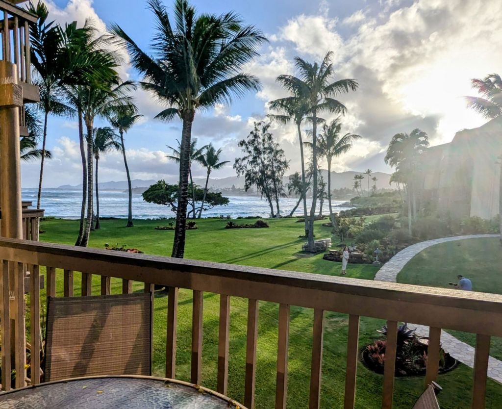 Für unser Aufenthalt auf Kauai haben wir neun Tage eingeplant, ein wenig als Auszeit und Erholung. Vielleicht deshalb fühlt es sich ein wenig wie ein Ankommen an. Aber auch die Ferienanlage, direkt am Lae Nani Beach, trägt dazu bei. Die Anlage – ein Traum – liegt eingebettet in einen gepflegten tropischen Garten, mit Palmen, Blumen, einem Pool und dem beständigen Rauschen des Pazifiks im Hintergrund. Der Lae Nani Beach selbst ist ein Küstenabschnitt an der Ostseite der Insel. Kein überlaufener Touristenstrand, sondern nach unseren Erfahrungen vom Waikiki Beach eher ein beschaulicher Ort. Von unserer Unterkunft aus sind es nur ein paar Schritte über den Rasen bis zum Ufer. An den ersten Tagen sind die Wellen mächtig hoch, so dass wir zum Schwimmen erstmal den Pool bevorzugen. Besonders gerne sitzen wir auf dem Balkon, fast wie in Hannover, nur mit einem  anderem Ausblick und Klima. Und abends gehen nicht die Laternen an, sondern es werden die Fackeln angezündet. Nur Luca wartet – nach der schlechten Erfahrung mit dem Feuer auf dem Campingplatz – darauf, dass sie wieder ausgeschaltet werden. Wir sind uns einig, zurück auf unserm Balkon in Hannover werden wir noch oft an diese Zeit zurückdenken