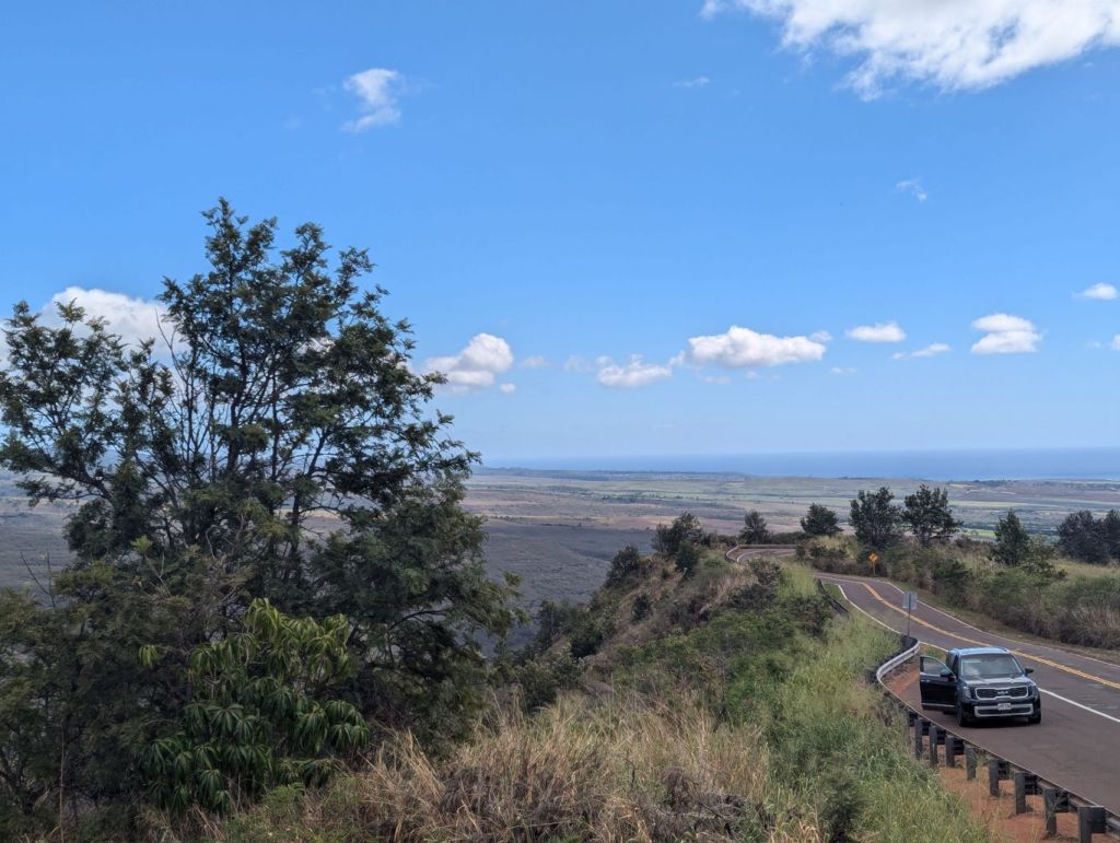 Am nächsten Tag ging es entlang der Nordküste Richtung Hanalei. Die Fahrt führte über eine kurvenreiche Straße, vorbei an dichtem Regenwald und weiten Ausblicken auf die grünen Berghänge. Je weiter man nach Norden kommt, desto tropischer wirkt die Landschaft. Hinter Hanalei wird die Straße immer enger und führt über schmale Brücken und direkt an der bröckelnden Steilküste entlang.  Zeit zum Umdrehen!