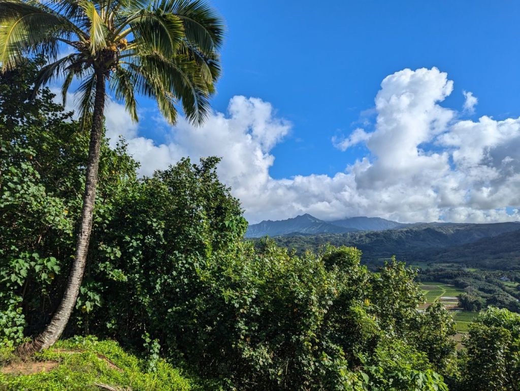 Auf der Rückfahrt halten wir am Aussichtspunkt oberhalb des Hanalei Valley. Ins Tals öffnet sich der Blick auf weite Taro- und Reis-Felder, die seit Jahrhunderten bewirtschaftet werden und noch heute zu den wichtigsten Anbaugebieten der Insel zählen. Zwischen den Feldern schlängeln sich kleine Wasserläufe, und über allem ragen die grünen, steilen Berghänge auf, aus denen nach Regen unzählige Wasserfälle herabfließen. Das Tal ist ein Stück traditionelles Hawaii, das maßgeblich zur Versorgung und Kultur der Insel beiträgt.