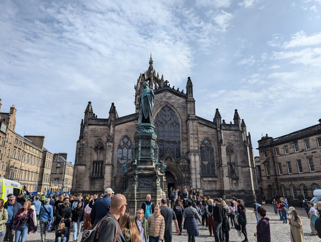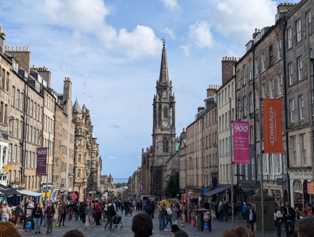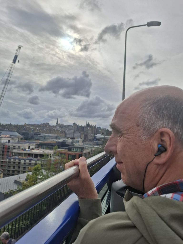 Edinburgh begrüßte uns mit strahlendem Spätsommerwetter – die Stadt zeigte sich von ihrer besten Seite. Unser Tag begann mit einem Spaziergang über den Farmers’ Market, vorbei an duftendem Gebäck, Käse und frischem Obst. Von dort ging es weiter hinauf zum majestätischen Edinburgh Castle, das hoch über der Stadt thront. In der Innenstadt stießen wir auf eine Demonstration für die schottische Unabhängigkeit. Fahnen, Musik und Stimmen füllten die Straßen – ein Stück aktueller Geschichte, direkt erlebbar zwischen den alten Mauern der Stadt. Am Nachmittag stiegen wir am Waterloo Place in den Hop-on-Hop-off-Bus. Die große Runde führte uns durch die Stadt hinaus bis nach Newhaven, wo wir im alten Fischmarkt eine Pause einlegten. Danach folgte noch eine gemütliche Runde durch das geschichtsträchtige Leith, das Hafenviertel mit seinen Kanälen und Brücken. Ein Tag voller Kontraste: vom geschichtsträchtigen Schloss bis zum Meer, von politischen Stimmen bis zu ruhigen Hafenstraßen – Edinburgh in seiner ganzen Vielfalt. Wir fühlten uns teilweise wie in einer anderen Welt oder Filmkulisse.
