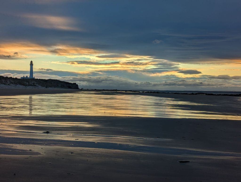 Am Abend kehrten wir zurück nach Lossiemouth. Auf dem Campingplatz erlebten wir einen warmen Sonnenuntergang über dem Meer, der den Tag in goldenes Licht tauchte – ein perfekter Abschluss für unsere Tour.