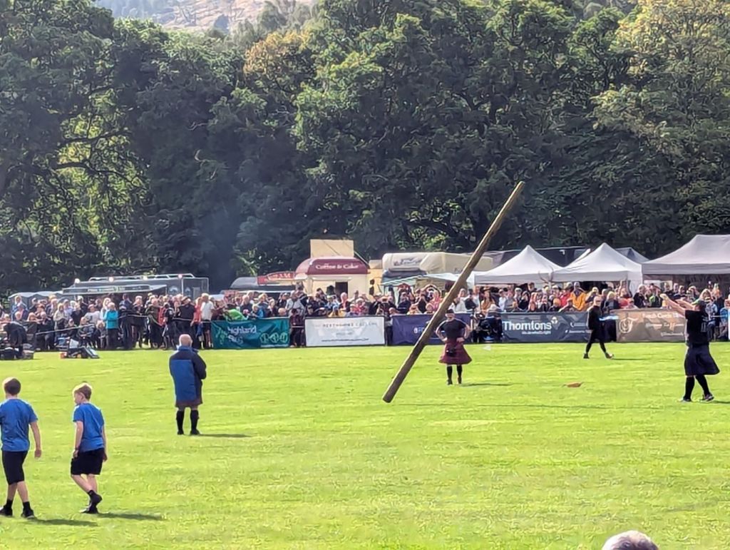 Heute erlebten wir ein Stück echtes Schottland: die Highland Games in Pitlochry. Schon beim Ankommen lag eine besondere Stimmung in der Luft – Dudelsackmusik, bunte Kilts und die Vorfreude auf die Wettbewerbe.