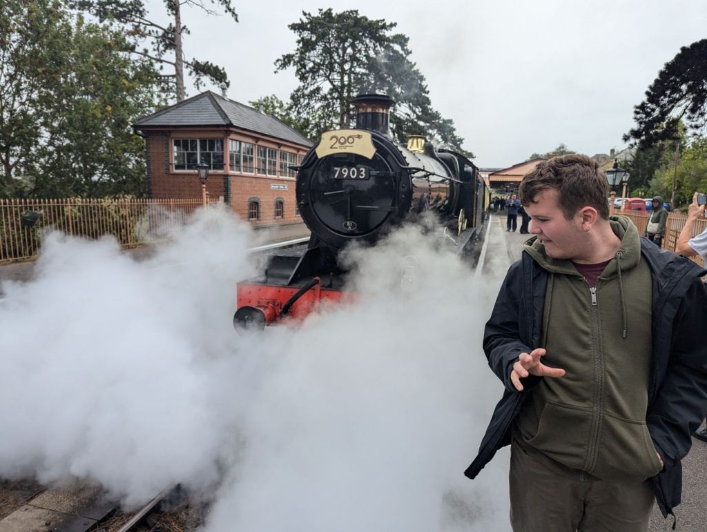 Gemächlich setzte sich unser Zug in Bewegung. Das rhythmische Stampfen der Lok und die gelegentlichen Rauchwolken erinnerten daran, wie Reisen früher geklungen und gerochen haben müssen. Durch die offenen Fenster wehte der Fahrtwind herein, während draußen die sanften Hügel der Cotswolds vorbeizogen. Dörfer mit Sandsteinhäusern, Felder und kleine Bahnhöfe wie aus einer anderen Zeit begleiteten die Fahrt. Besonders beeindruckend: Die gesamte Bahn wird von zahlreichen ehrenamtlichen Mitarbeitern betrieben, die mit Herzblut bei der Sache sind. Vom Schaffner bis zum Lokführer – überall spürt man die Freude und Leidenschaft für die alte Eisenbahn. Mit ihrer Freundlichkeit und Hilfsbereitschaft machten sie die Fahrt zu einem runden Erlebnis.