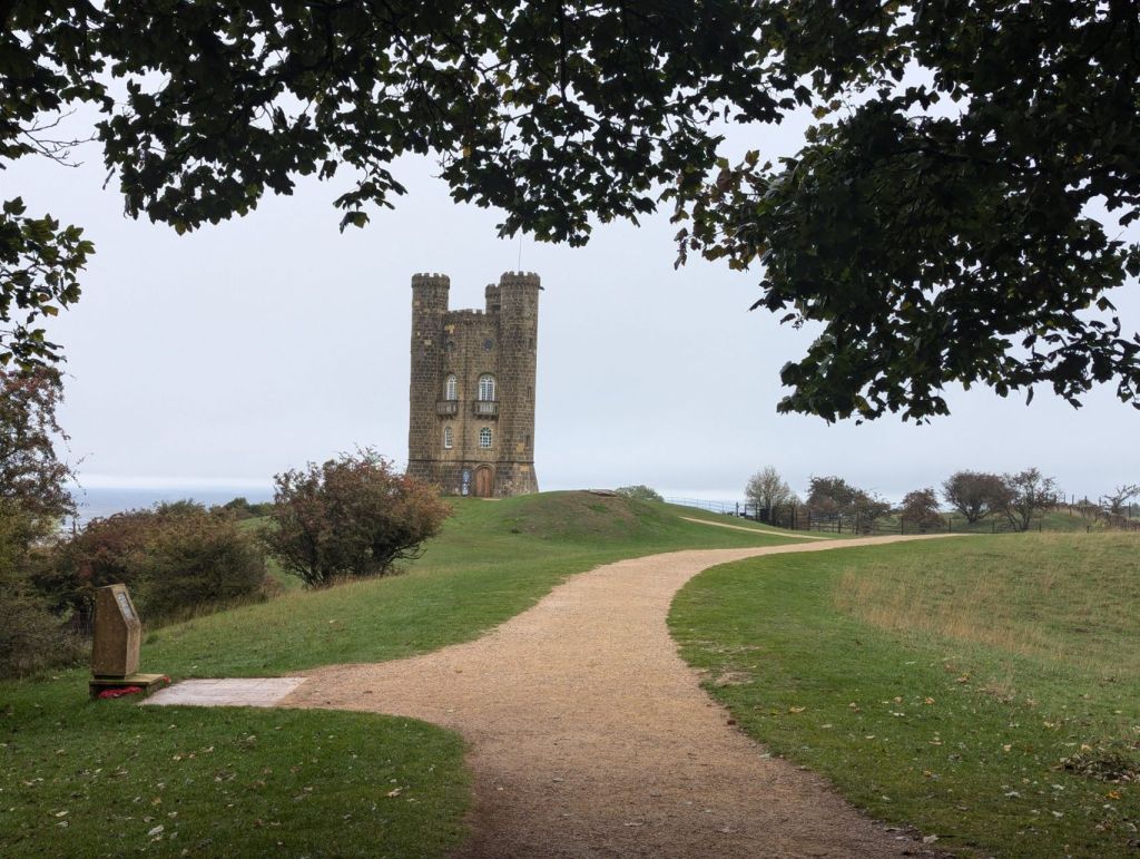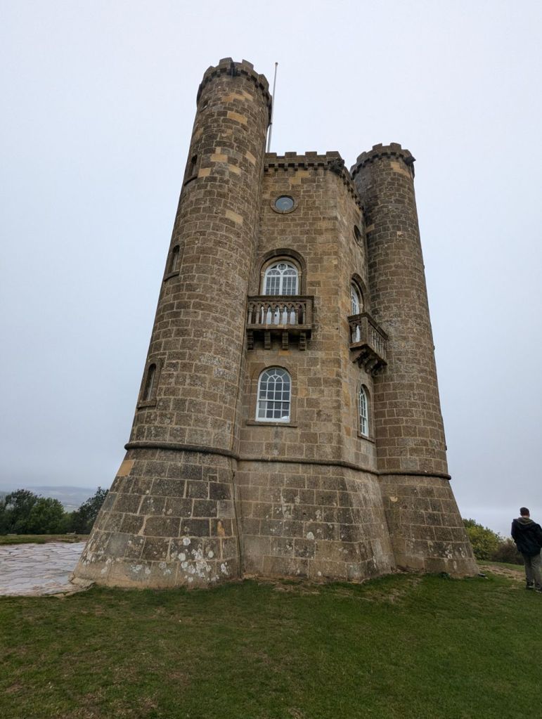 Am Endbahnhof in Broadway blieb noch Zeit für einen Abstecher zum Broadway Tower. Obwohl heute die Sonne fehlte beindruckt der Tower mit seinen Türmen, die im Dreieck aufgestellt sind und ebenso die tolle Aussicht. Als wir vor dem Turm standen hatten wir den Eindruck: Rapunzel lässt gleich ihr Haar herunter.